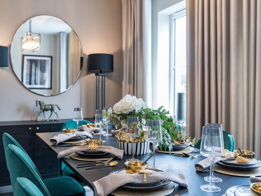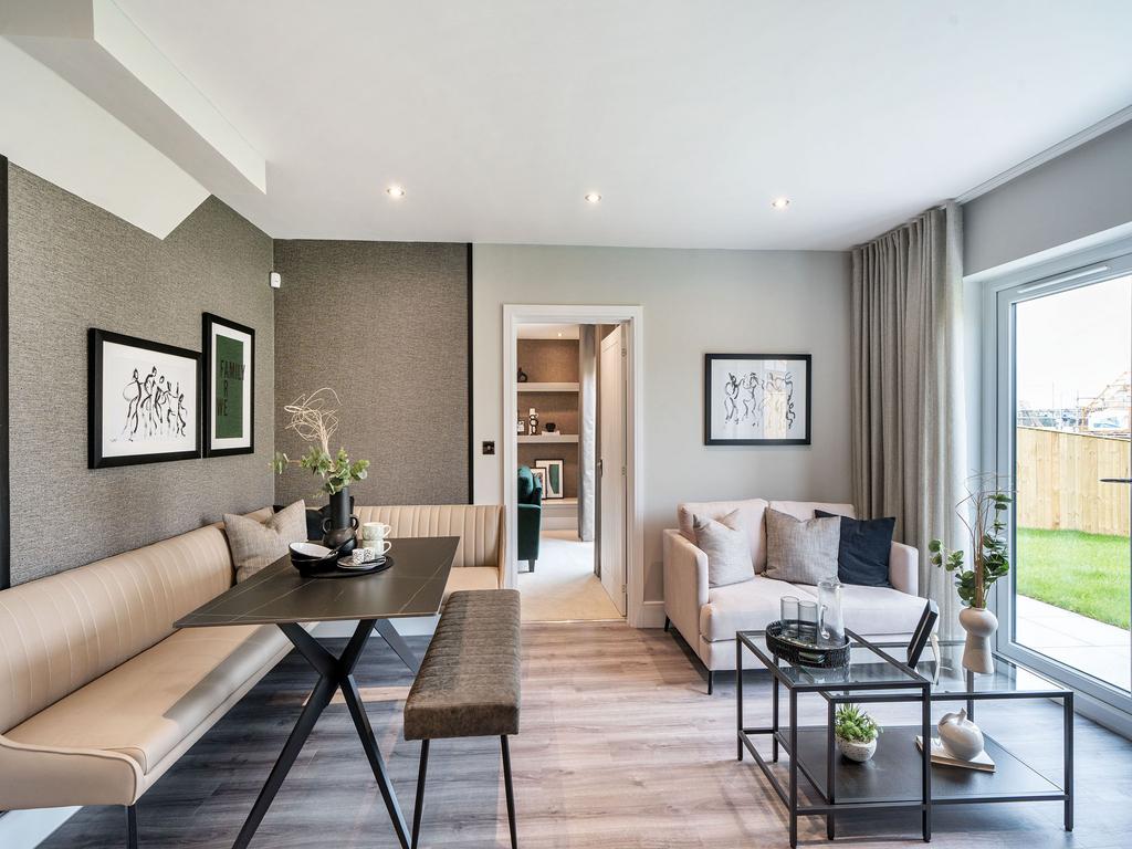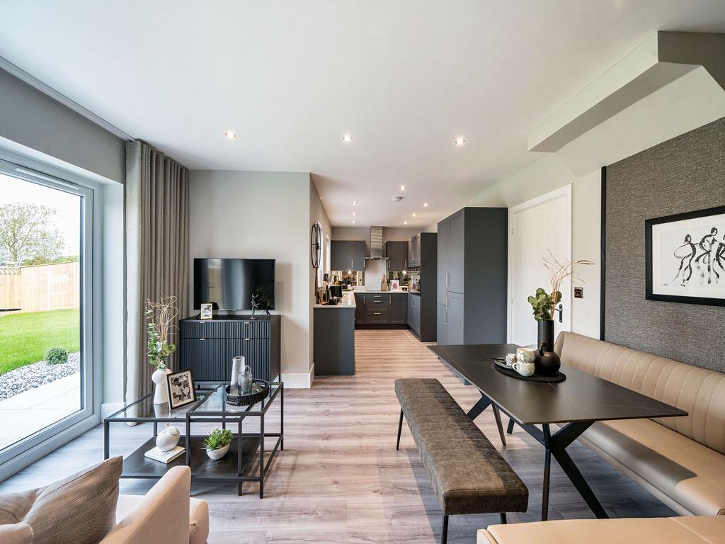 The Bond is a stunning five-bedroom detached family home, offering generous, flexible accommodation. A spacious entrance hall with a central staircase welcomes you inside. Double doors take you into the living room which has French doors to the garden. The kitchen/family room also has French doors and access from the hall as well as directly from the living room. The separate dining room would also make a convenient home office or a cosy snug. A dedicated utility room with outside access and a downstairs WC are included on the ground floor. Upstairs, the master bedroom is en-suite and the other bedrooms have a lovely bright family bathroom to use. Bedroom five would make a perfect nursery or perhaps a hobby room.