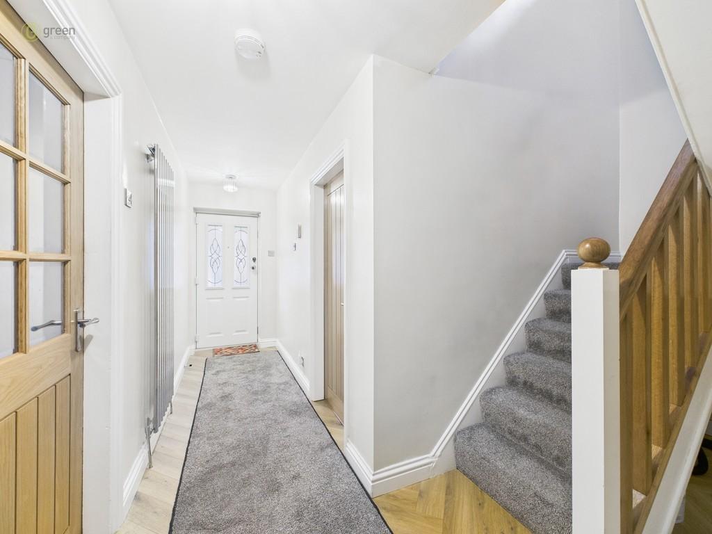WELCOMING RECEPTION HALLWAY Being approached by a leaded composite double glazed entrance door with laminate flooring, spindled bespoke stair case leading off to first floor accommodation, useful under stairs storage cupboard and doors leading off to all rooms.