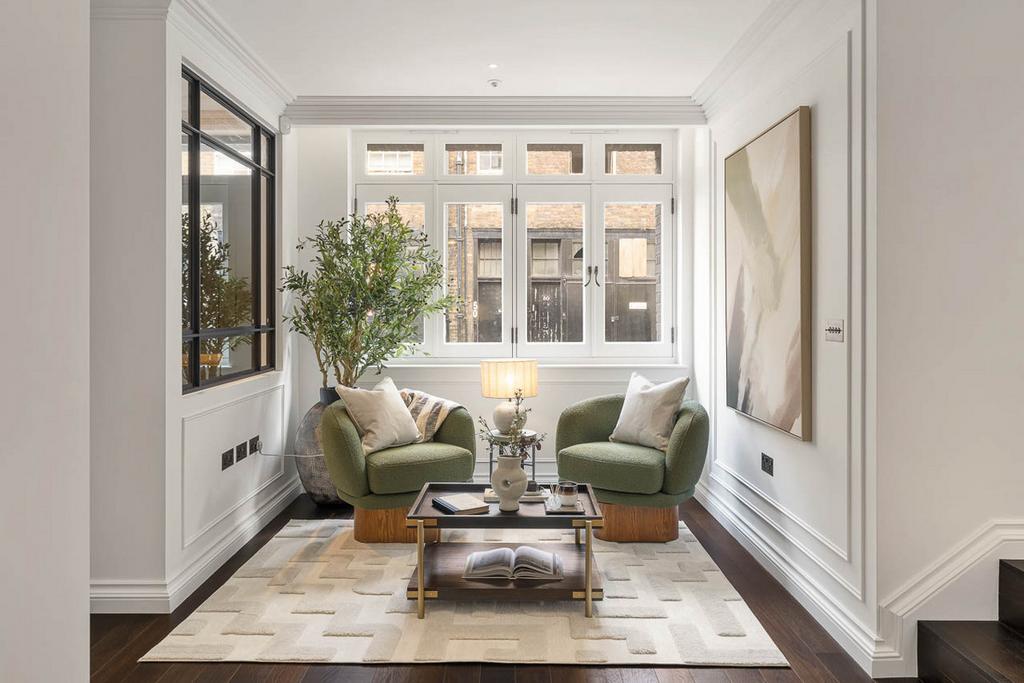 Accessed via the main entrance of Six Charles Street or through its own private front door on Hay’s Mews, this three-bedroom townhouse offers a private secure parking space as well as 1,553 sq ft of living space.