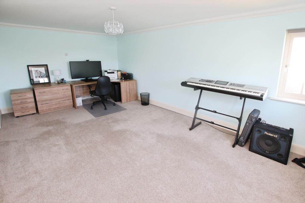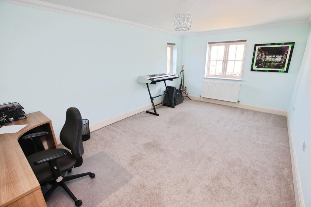 A flexible space currently used as a study, can fit a singled bed with wood-effect tiled flooring and front-facing window.