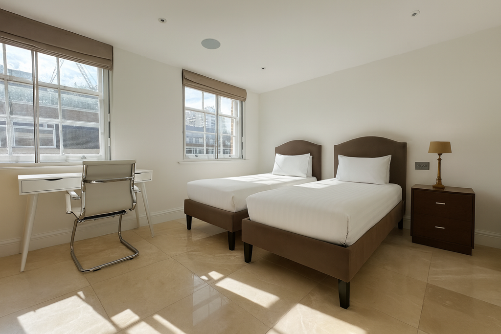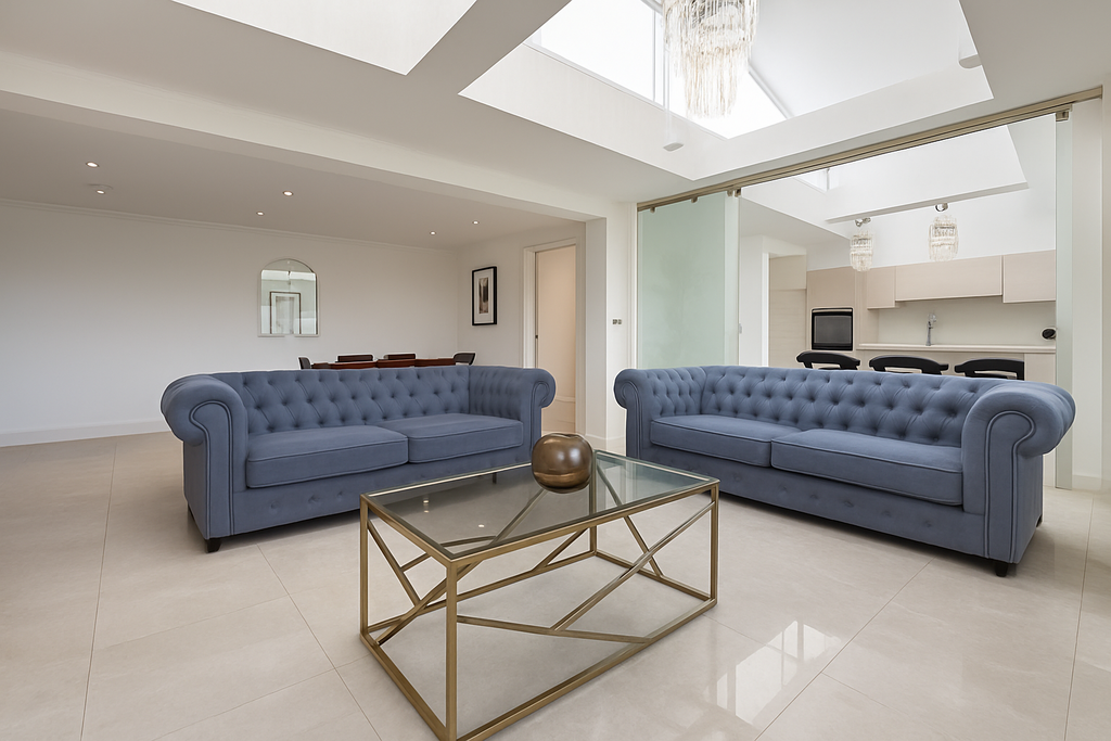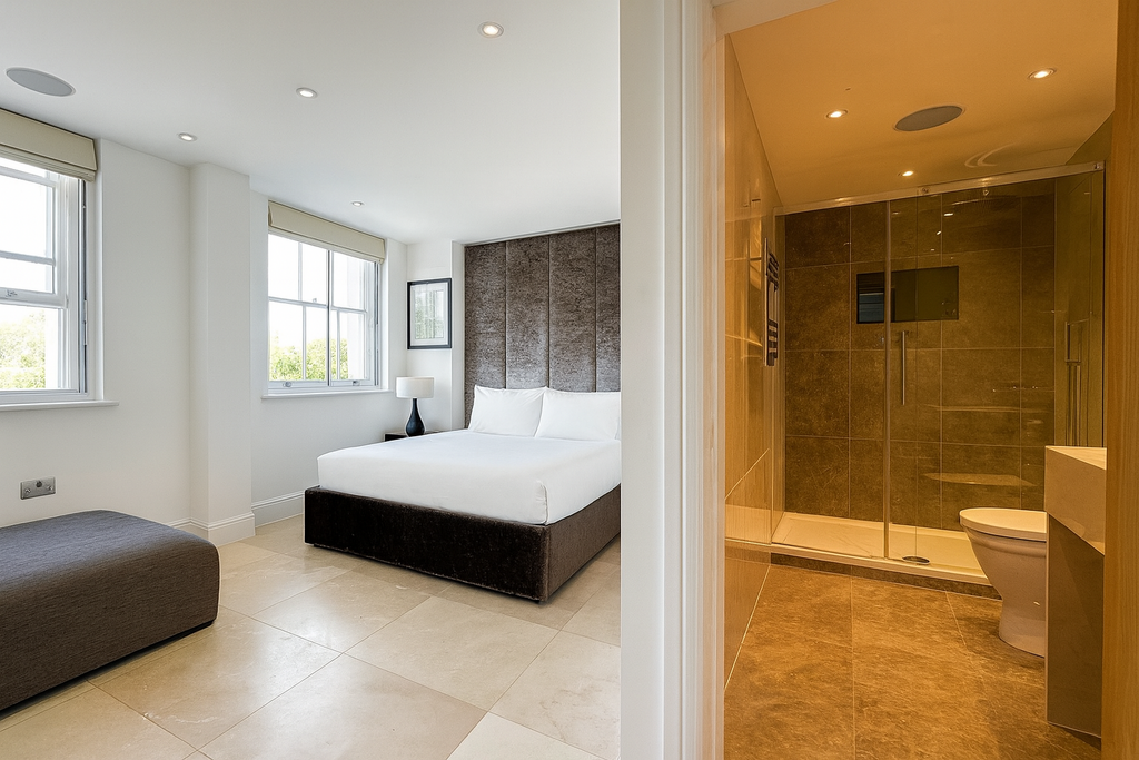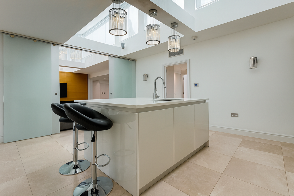 Offering expansive single-level living, the apartment is ideal for families and entertaining, with a bright open-plan reception and dining room leading to a modern kitchen, four luxurious bedroom suites, and a guest cloakroom.