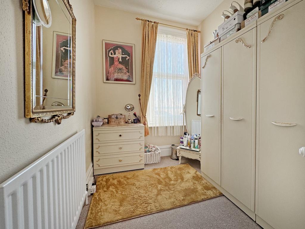 As you ascend the staircase, you’re welcomed onto a split level first floor landing, which hosts the family bathroom, two large double bedrooms (one to each aspect) and a single bedroom which is currently utilised as a dressing room. The family bathroom is well finished with full height natural stone tiles with mosaic band detailing and a Victorian inspired sink and toilet, complimented by a corner bath. The two double bedrooms enjoy beautiful feature fireplaces, inclusive of the master bedroom which is located to front aspect with views across the sea that will leave you struggling to get out of bed on a morning.