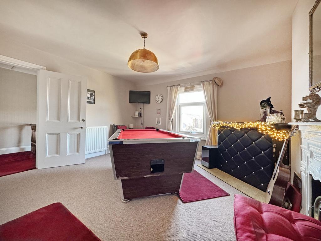 The return wooden spindle staircase continues up to the second-floor landing with two further double bedrooms and a single bedroom, all with vaulted ceilings. The two double bedrooms again benefit from a feature fireplace. The double bedroom to the rear aspect is currently utilised as a games room and home bar, whilst the double to the front aspect is a home office with again stunning sea views.