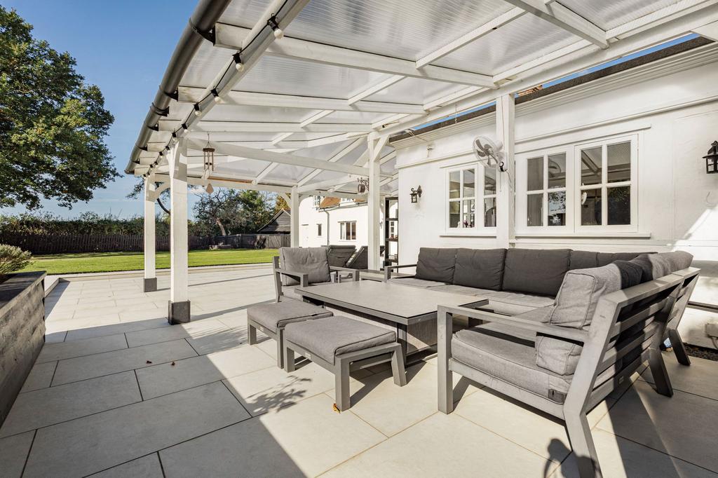 Set on a generous plot, the house enjoys beautifully maintained south-facing gardens with a large terrace, sweeping lawns, and far-reaching views over open farmland. Outbuildings include a double cart lodge and garden stores and workshop measuring 16' x 32 plus ample driveway parking.