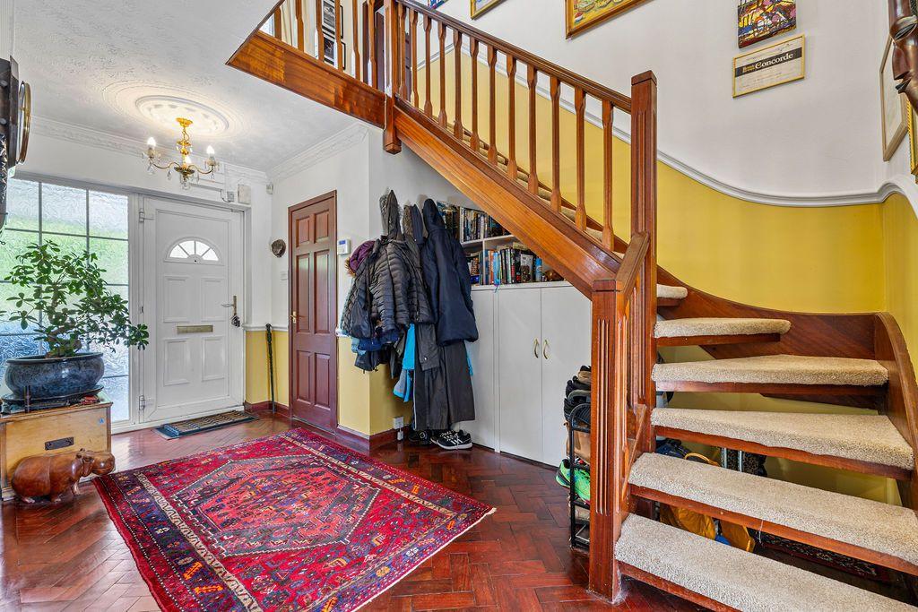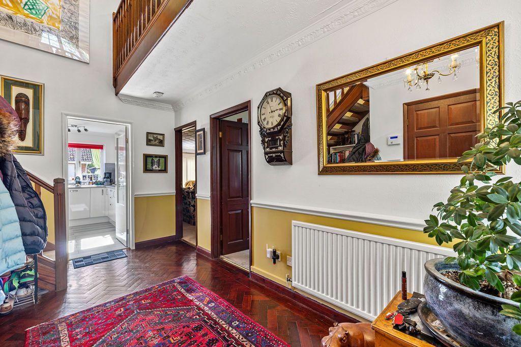 uPVC double glazed door and frosted window to the front . Radiator. Stairs to first floor. Parque flooring. Doors to;