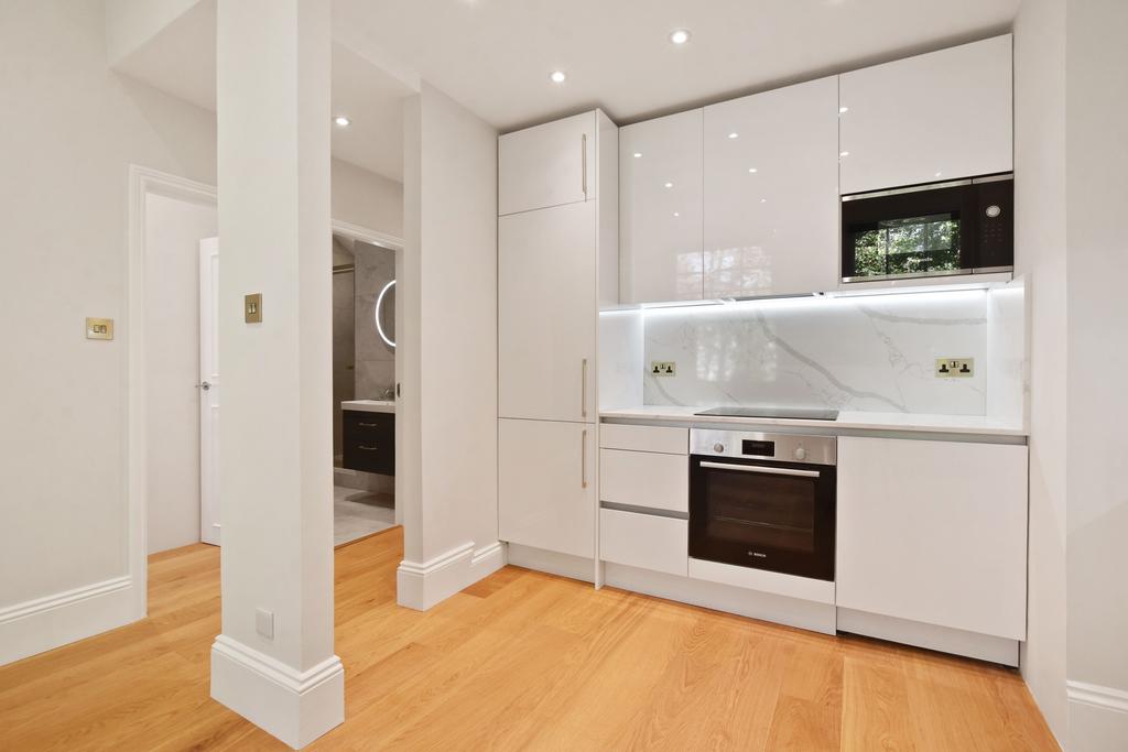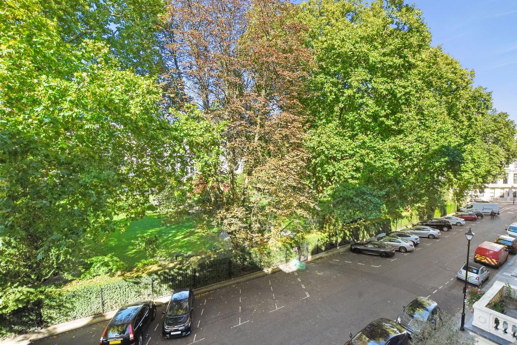 The living area has wood flooring and two large sash windows overlooking the square, which as a resident, you will have access to.