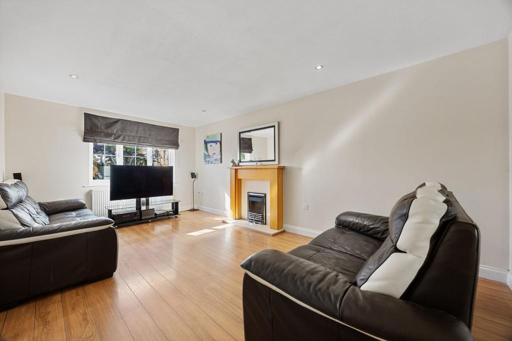 At the heart of the home, the kitchen/breakfast room provides fantastic proportions with excellent storage and worktop space, alongside room for dining. It comes complete with an integrated double electric oven, gas hob, and space for an American-style fridge freezer. French doors lead out to the garden, encouraging a seamless flow between indoor and outdoor living. A separate utility room with its own external door to the side of the property, adds further convenience to the ground floor. The gas boiler was replaced in 2021, ensuring reliable and efficient heating throughout the home.