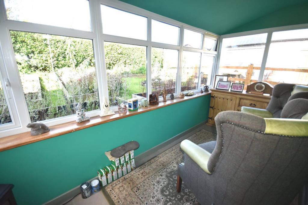With tiled flooring, triple glazed windows to three sides and door to exterior