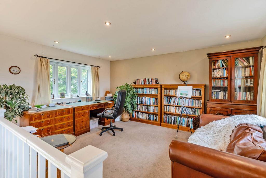 A standout feature of the property is the spectacular double-height reception room, believed to be a converted chapel, complete with galleried landing and study area. This stunning space provides a bright and airy contrast to the cosier character of the main house.