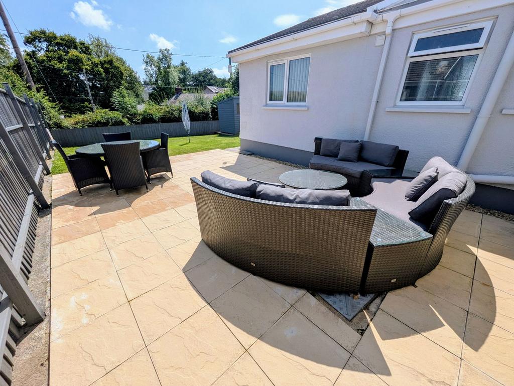 Front garden laid to lawn, side driveway providing ample parking, enclosed rear garden with paved patio area, lawned area.