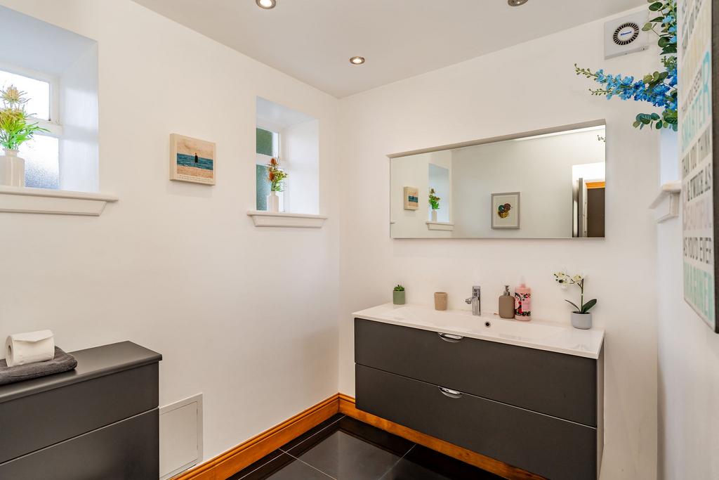 Outside, the enclosed rear garden is a charming retreat with picturesque views over Musselburgh Golf Course, the oldest in the world. Landscaped with paving, a manicured lawn, and a hot tub, it’s the ideal setting for relaxing or entertaining with friends and family. There is private parking for up to two vehicles.