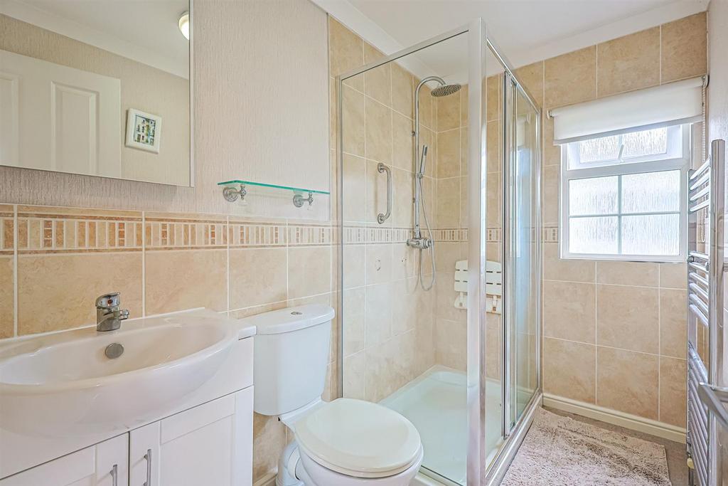 Bathroom - 2.51m x 1.45m (8'3 x 4'9 ) - Obscure double glazed window to the side, corner shower unit, vanity sink unit with storage below, WC and tiled walls surround.