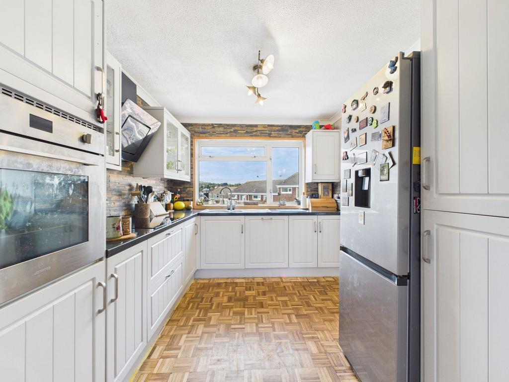 KITCHEN / DINER An open plan kitchen and dining area, thoughtfully designed for modern living. The kitchen features a comprehensive range of wall, base and drawer units with roll edged work surfaces, a 1 1/2 bowl stainless steel sink and drainer, an integrated eye level electric oven with grill, and a four ring induction hob with extractor above. Additional highlights include an integral dishwasher, a deep larder cupboard, and space and plumbing for a washing machine and fridge freezer. There is ample room for a 6 seater dining table, with uPVC double glazed windows to both the front and rear aspects and a gas central heating radiator.