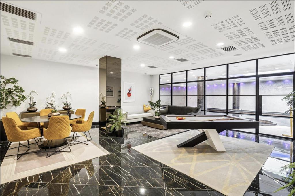 This stylish ground floor apartment has a formal living room, kitchen with dining area, central island and built-in Miele and Gaggenau appliances, utility room, study or fourth bedroom, principal bedroom with dressing room and an en suite, and two further en suite bedrooms with built-in wardrobes. There is also a separate WC, east and west facing terraces, air conditioning and a built-in speaker system.