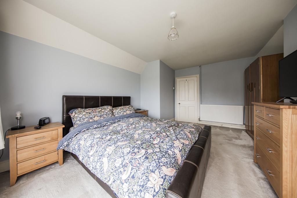 BEDROOM: Space for two wardrobes, fitted carpet, radiator and square bay window to rear with far reaching views.