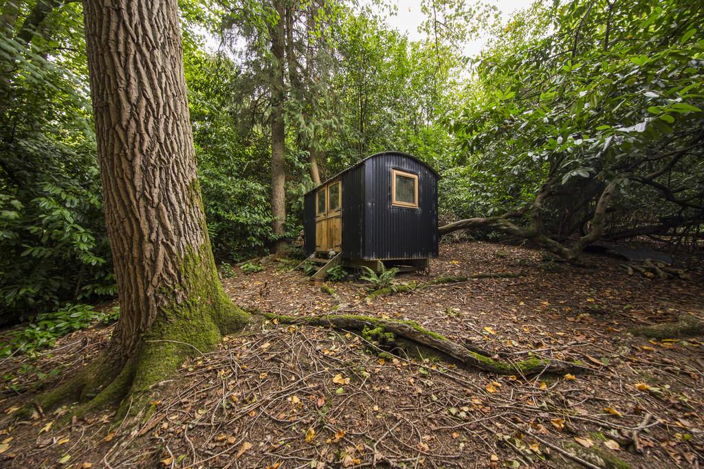 OUTSIDE REAR: Outside to the rear are large communal gardens with a paved terrace to enjoy the far reaching views. There is also a private section of woodland with a shepherds hut.