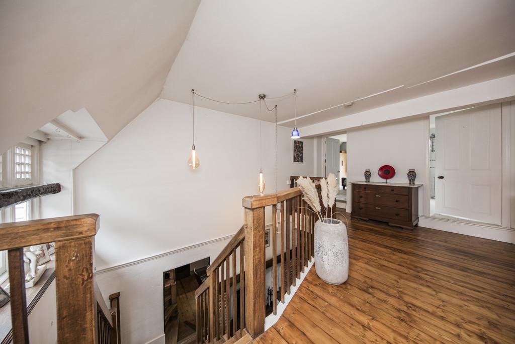 A spacious, light-filled maisonette set within an impressive period country house, to include approximately an acre of beautifully maintained communal gardens. The property enjoys far-reaching views to the rear, including access to a private section of woodland. Internally, the accommodation comprises a generous sitting room, a well-appointed kitchen/dining room, and a galleried landing leading to three bedrooms and a family bathroom. Externally, the property benefits from a garage en bloc and a communal parking area, available on a first-come, first-served basis.