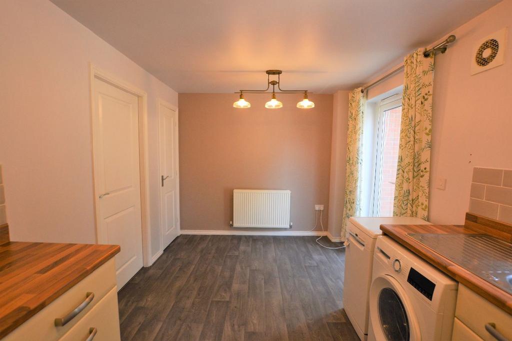At the rear of the property is the modern kitchen, complete with dishwasher and washer/ dryer. There is space for a dining table and a large under stairs cupboard. There are patio doors leading to the rear garden which consists of a patio area and lawn.