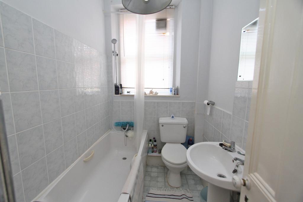 BATHROOM matching white suite with panelled bath with mixer tap and shower attachment, pedestal wash hand basin, close coupled wc, part tiled walls.