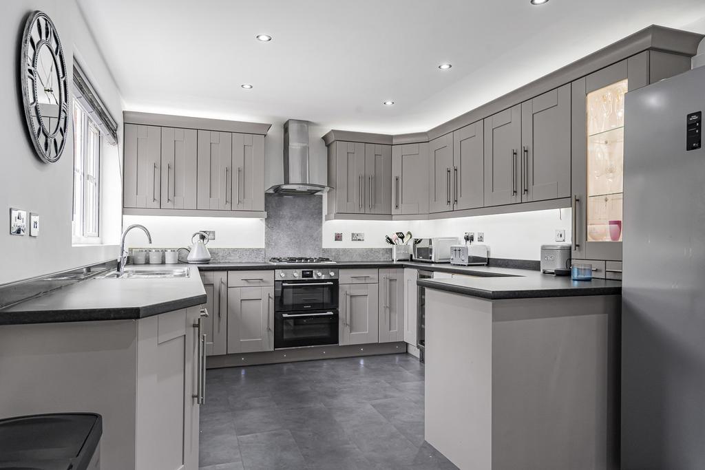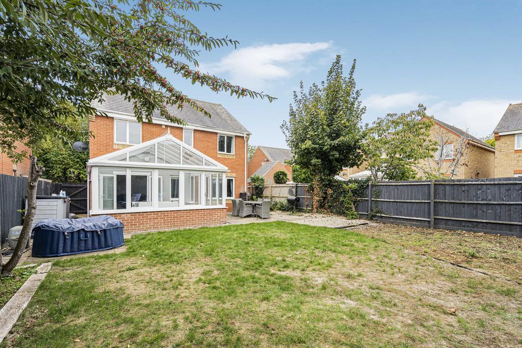 Ideally located in a tucked away end of close position, a significantly improved four bedroom detached house with particularly spacious accommodation. This delightful property has a large stylish hallway, a generous living room with feature fireplace and large conservatory off. There is a separate study and dining room as well as a beautifully refitted kitchen/breakfast room with utility. All four bedrooms are good sizes with an excellent ensuite to the main bedroom, bedrooms two and three share a Jack and Jill ensuite. Additionally there is a refitted family bathroom. To the front the property offers good parking and there is a double garage. The rear garden is well proportioned and unusually private.
