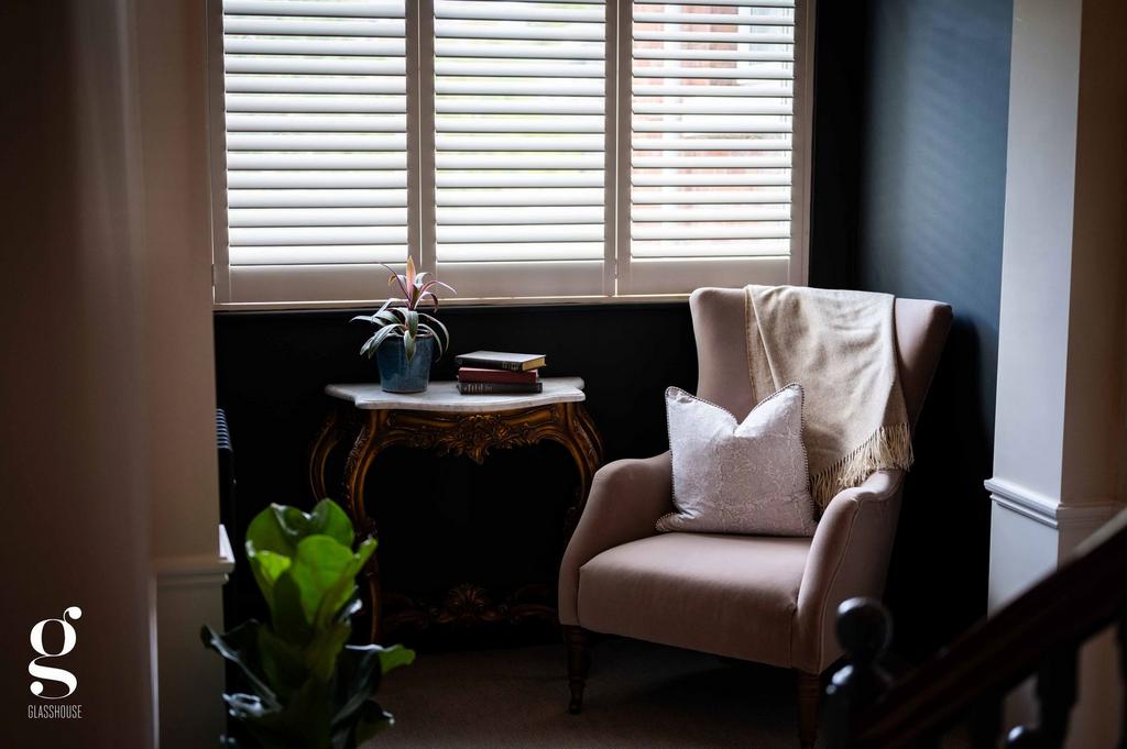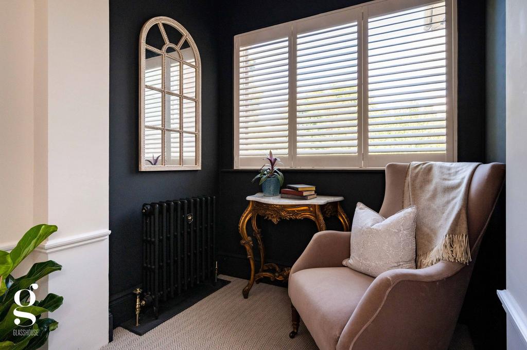 First Floor Landing: Wide and well-lit, freshly decorated with bespoke panelling, leading to the bedroom suites. A seating area at the top of the stairs offers a perfect reading nook, beneath the shuttered window.