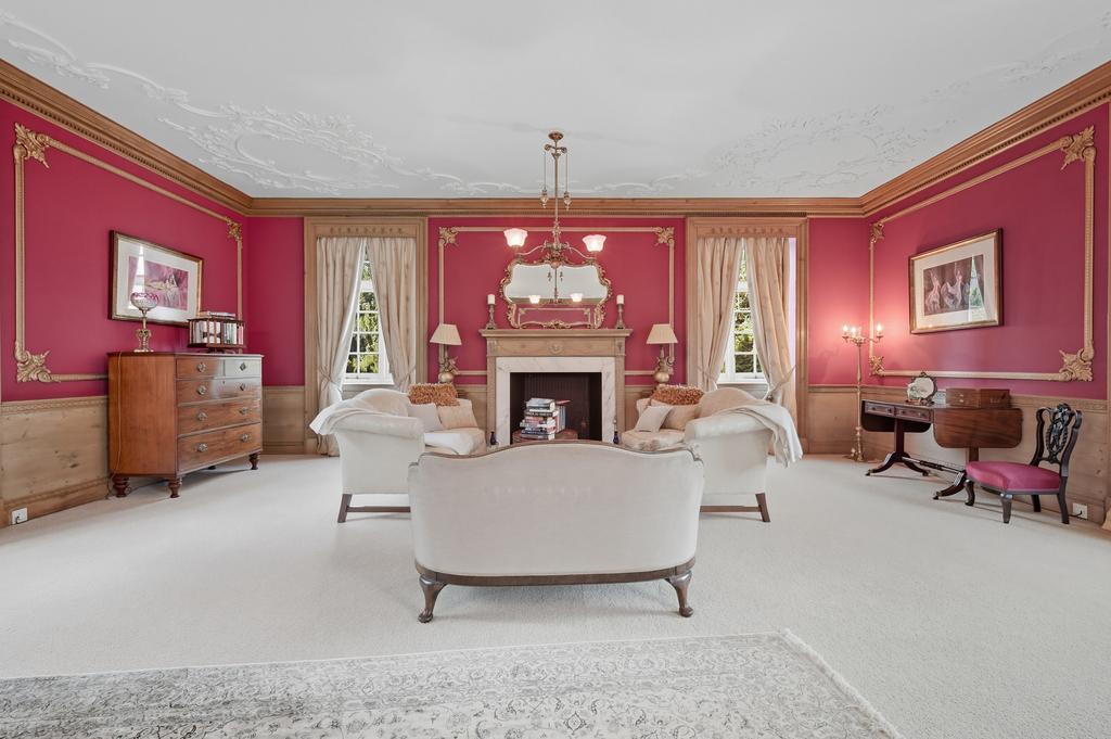 * The Derby room is truly impressive measuring over 35' in length and has windows on two facing walls, and a fine carved fireplace with marble hearth and pedimented chimney piece over flanked by two arched display recesses and fluted Corinthian columns and a concealed door to the servery.