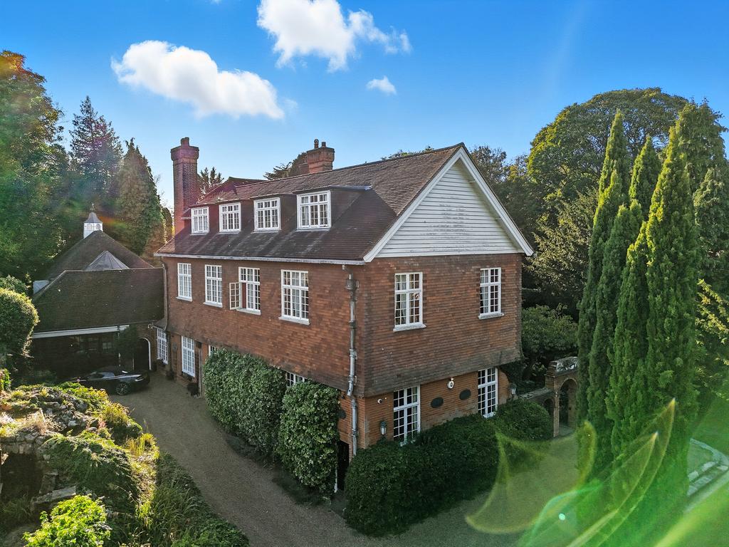 * To both the front and the rear of the property, there is an atmosphere of tranquillity coupled with a recurring element of the unexpected. Sympathetic landscaping has avoided excessive formality by preferring a miscellany of winding paths, hidden retreats and outbuildings. Planned precision is most evident in the yorkstone terrace and stone bridge spanning an ornamental pond before the spreading lawns and beyond. Out of sight of the house, the far side of a delightful laburnum avenue, the walled vegetable garden and high lawn are perhaps the most private parts of the grounds, and a replica of a village inn complete with bar and open fireplace overlooks the recently resurfaced hard tennis court. To the front, the grounds slope gently down towards Camden Park Road, which is almost completely obscured by an array of mature trees.