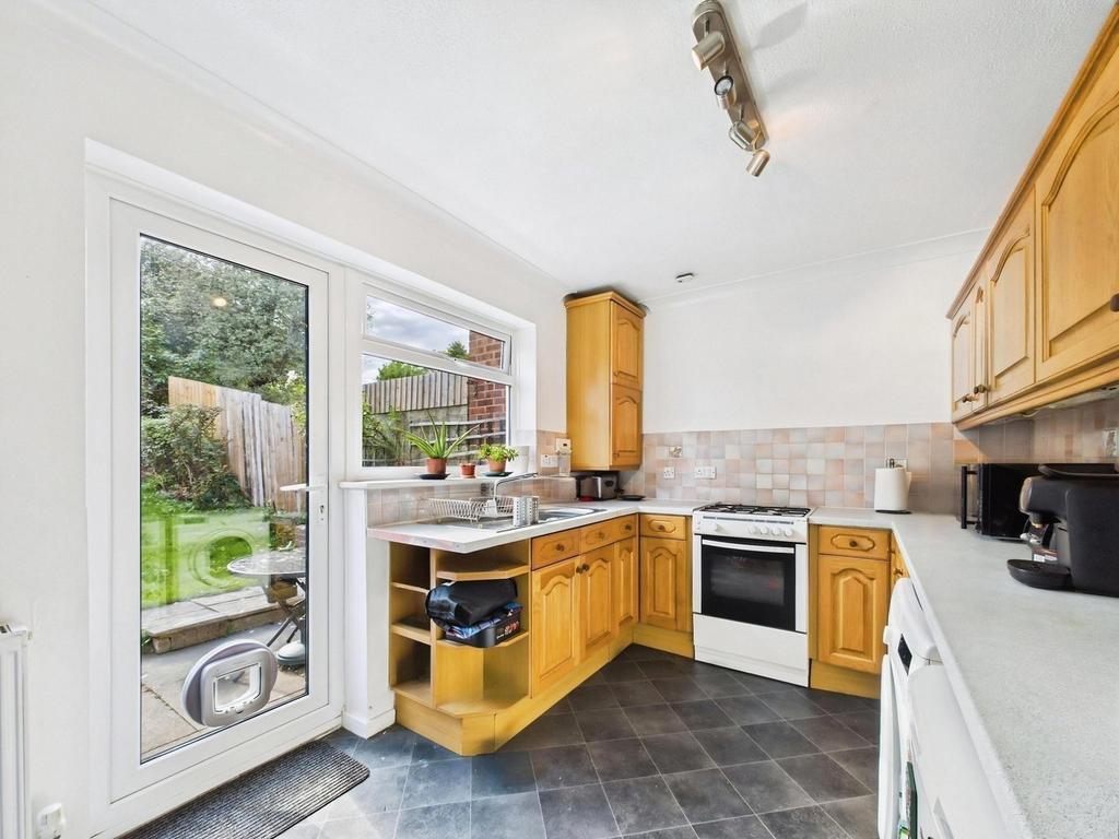 The kitchen comprises a range of matching wall and floor mounted units with a worksurface over. There is space for a freestanding oven, space and plumbing for a washing machine and additional appliance space. A rear elevation window and door provide views over, and open onto the rear garden.