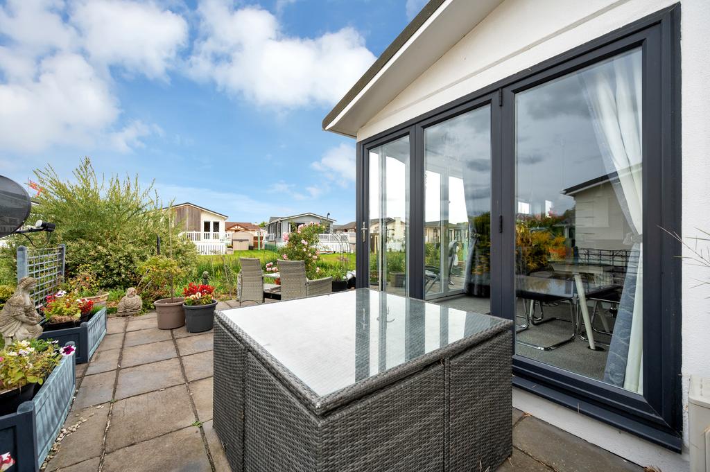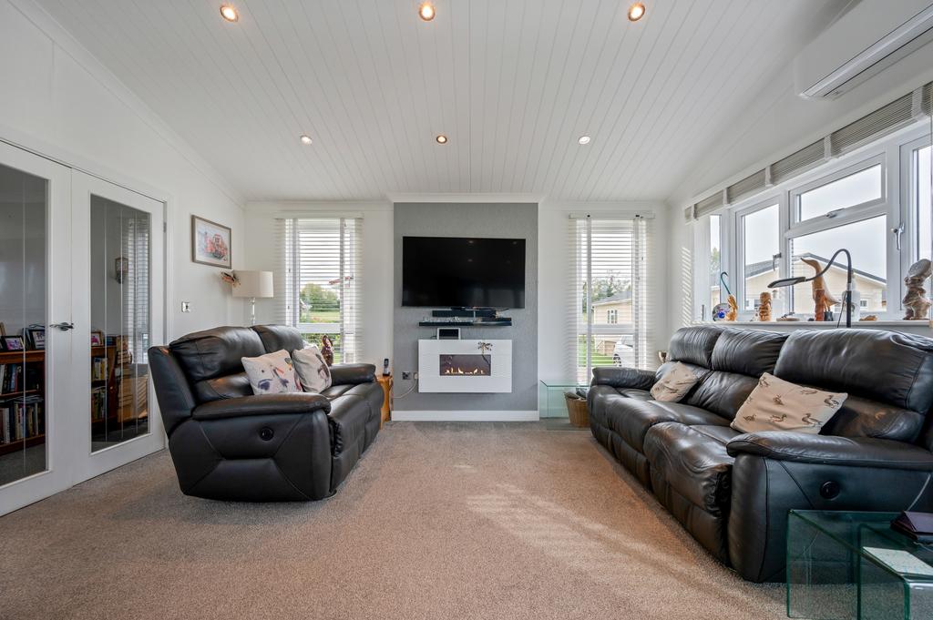 The lodge offers three well-proportioned bedrooms. The principal bedroom benefits from a walk-in dressing room and a stylish en-suite shower room. The third bedroom is currently used as a home office but would also serve well as a single bedroom or hobby room. A modern family bathroom and ample built-in storage complete the interior.