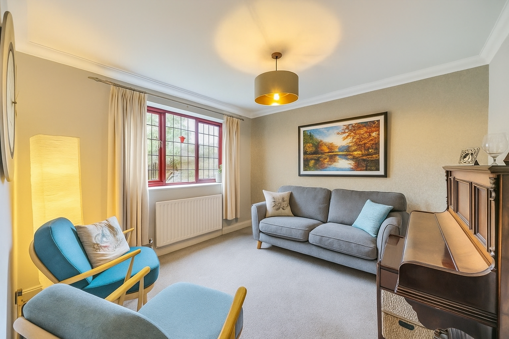 On approach, the home presents an attractive façade with well-kept gardens. Inside, the interior is tastefully decorated in a neutral style, ready for immediate occupation. A welcoming entrance hall, with newly fitted carpet, leads into a formal lounge complete with feature gas fire, bespoke cabinetry and an adjoining conservatory that enjoys a pleasant aspect over the rear garden. The recently installed fitted kitchen has been finished to a high standard, incorporating integrated appliances, adjoining utility store and patio doors opening directly onto the rear garden. A further reception room, ground floor cloakroom and a larger than anticipated home office, which could equally serve as a third reception room, all add to the flexibility of the ground floor. With its connection to the integral garage, this area also presents potential to be reconfigured as a self-contained suite for additional family members.