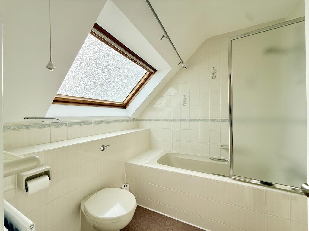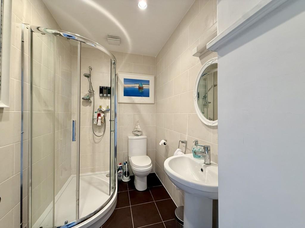 ENSUITE BEDROOM 2 7' 9" x 6' 10" (2.36m x 2.08m) The ensuite is thoughtfully equipped with a modern bath, complete with a mains-powered shower overhead, a sleek sink and WC, and a convenient radiator to keep you cosy all year round. Additional touches, such as a shaver point and ample lighting,