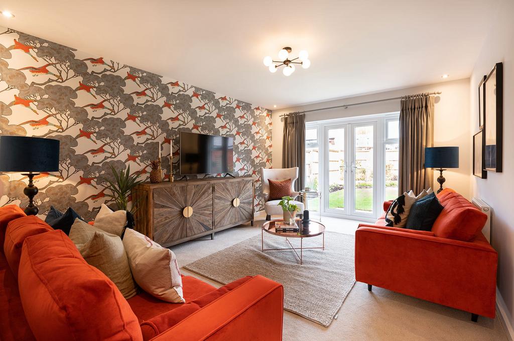 The impressive kitchen/dining/family room runs the total length of the home, at over twenty six feet. The contemporary fitted Symphony kitchen offers an array of storage facilities, cleverly hidden away in sleek kitchen cupboards which are fully customisable dependent on build stage. French doors open directly out into the private rear garden, making this an ideal space for taking family living outdoors. The elegant lounge, also with French doors to the garden, allows the light to come flooding in, creating a cosy atmosphere. The useful home office at the front of the home is ideal for those looking to work at home, or can even be used as a playroom or home gym. A convenient utility cupboard off the hallway, where washday activities can be hidden away and a cloakroom, complete the ground floor.