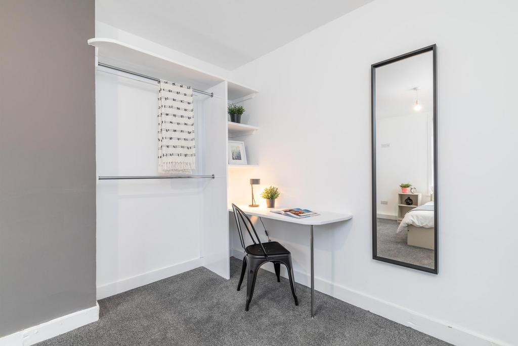• 6 large double bedrooms, fully furnished with everything you need: double bed, wardrobe, chest of drawers, bedside table, full-length mirror, desk, and chair - ideal for both study and relaxation.