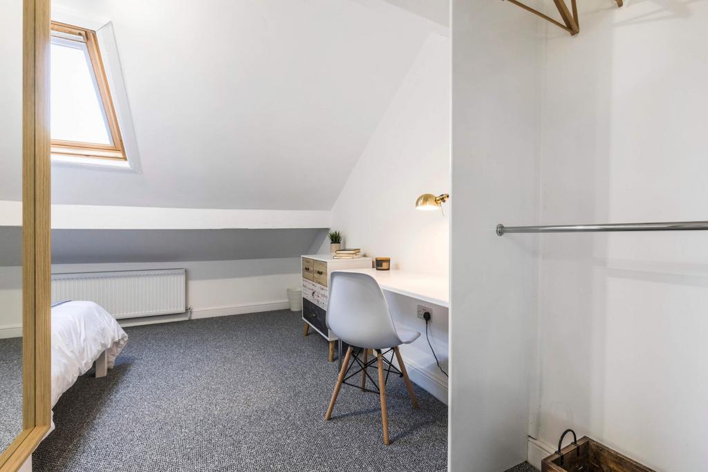 • 6 large double bedrooms, fully furnished with everything you need: double bed, wardrobe, chest of drawers, bedside table, full-length mirror, desk, and chair - ideal for both study and relaxation.