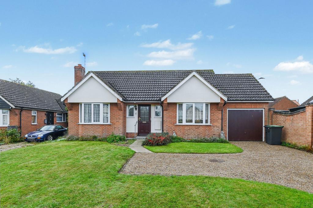 22 Jubilee Close is a well-presented and well-maintained two-bedroom detached bungalow, featuring a combination of partial brick and rendered colour-washed elevations beneath a pitched tiled roof. The property includes a single attached garage to the side. Positioned in a quiet cul-de-sac, the bungalow is attractively recessed from the road, with a driveway providing off-road parking in front of the garage with an open-planned garden to the front and an enclosed garden to the rear. Additional features include UPVC double glazing and strategically placed electric night storage heaters throughout