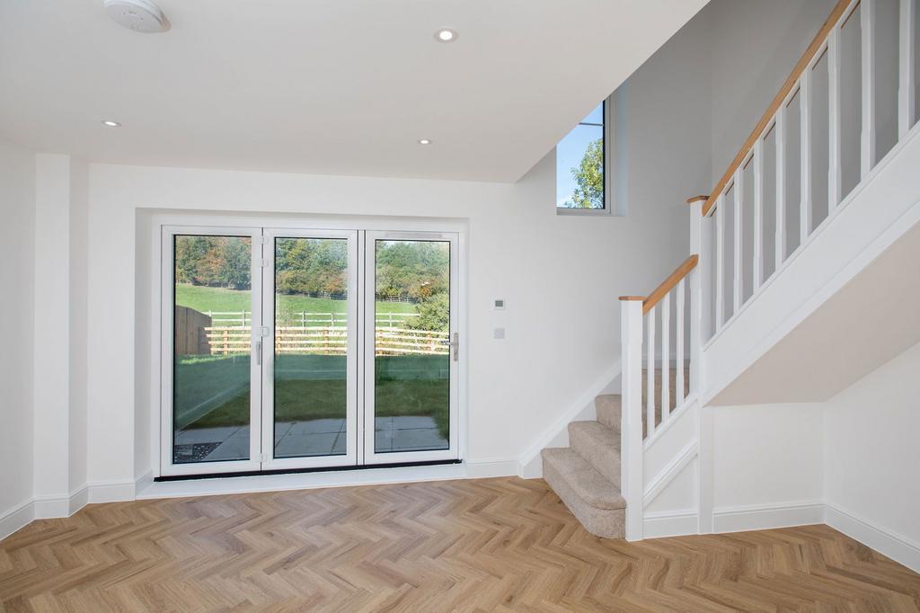 The kitchen/diner enjoys a lovely view over looking farmland, the kitchen is fitted with a stylish range of wall and base level units with Quartz work surfaces with wall upstands. There is an integrated range of quality appliances including an eye line double oven, induction hob, extractor hood, dish washer, fridge and a freezer. Bi-fold doors open onto the Juliette balcony which overlooks the rear garden.