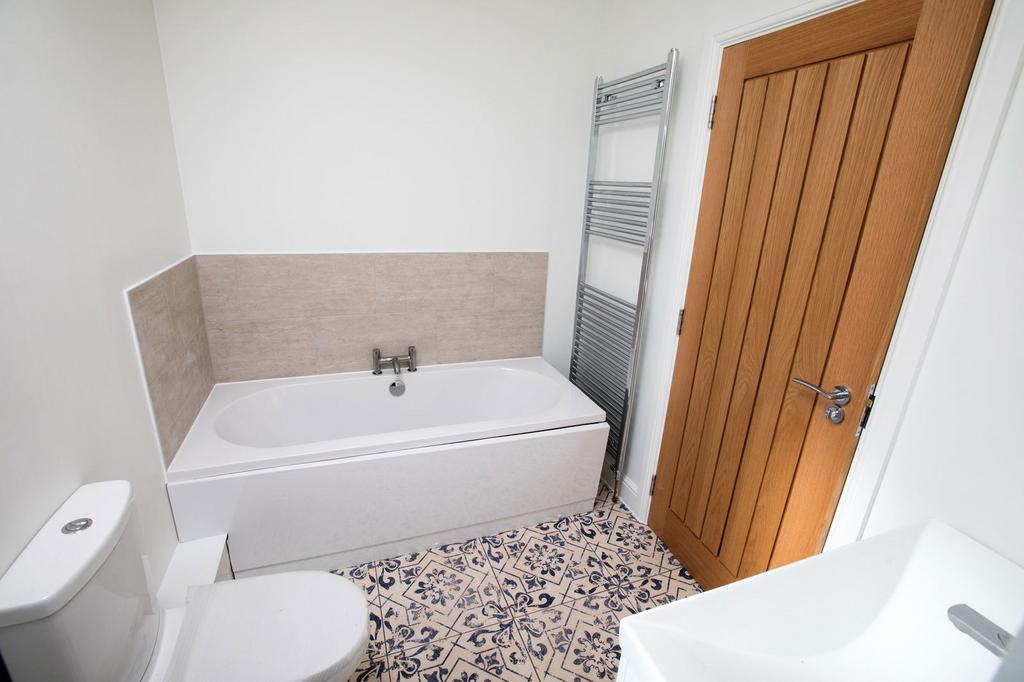 From the upper floor landing there is a family bathroom which includes a side panel bath with a central filler tap, WC, separate shower enclosure and there is a wash hand basin set within a vanity unit with ceramic tiled wall surrounds and there is a chrome heated towel rail.