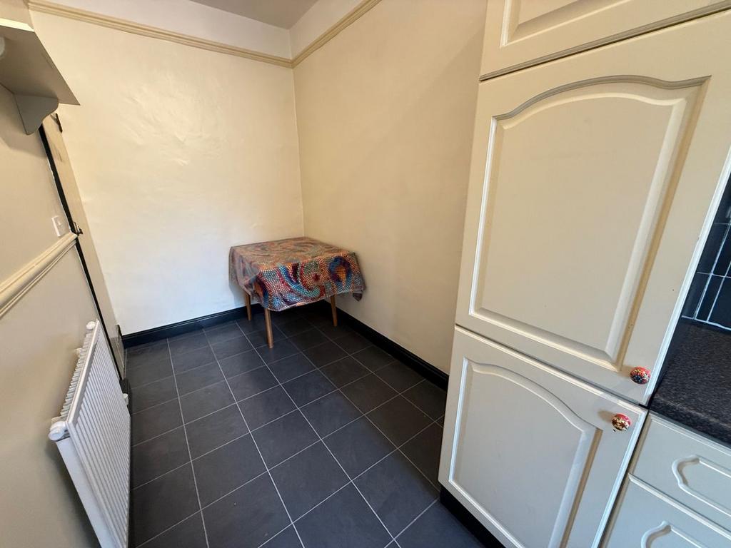 With multi bowl stainless steel sink unit, mixer tap, range of wall and base units with laminated work surfaces and tiling above the work top, integrated gas hob, electric oven and extractor and plumbing for automatic washing machine. Wall mounted Valliant combination condensing boiler and single radiator.