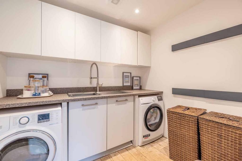 A spacious entrance hall sets the tone for this elegant family home, with parquet wood flooring flowing seamlessly throughout the entire ground floor. As you move forward you will find the heart of the property is an impressive open-plan kitchen and reception room, beautifully illuminated by rear-aspect windows and two sets of French doors leading onto the rear patio. The kitchen features a range of floor and eye-level units, granite work surfaces, a generous central island, and a Belling range cooker with a 7-ring gas hob, making it an ideal space for preparing family meals. This area flows effortlessly into a large, dual-aspect through living room, which offers additional built-in storage and connects to a spacious formal dining room making it the perfect for entertaining or relaxing with family. Also on the ground floor you will find a shower room (currently used for storage), a separate laundry room with sink complete with washing machine and tumble dryer, as well as an additional utility room with an integrated dishwasher. Internal access to the large double garage completes the ground floor.