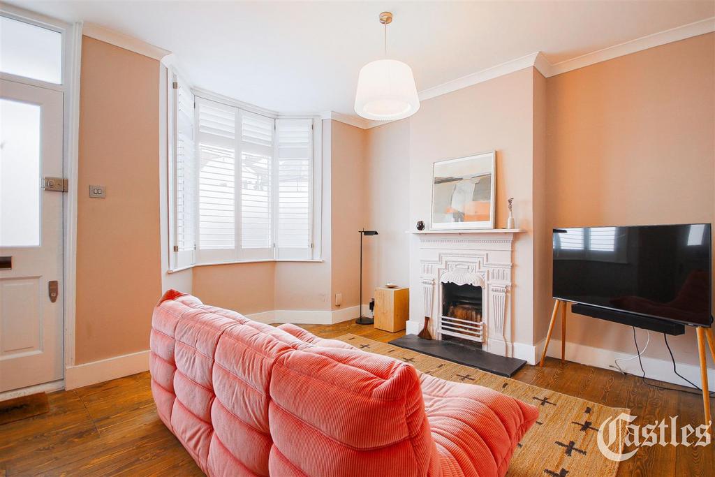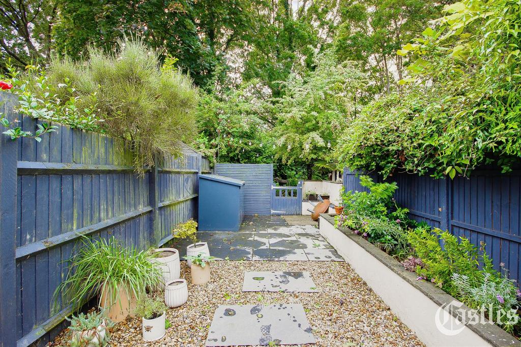 The property features a light-filled front reception with an open fireplace, a sleek kitchen/diner ideal for entertaining, and two generous double bedrooms – both complete with built-in wardrobes. A newly fitted, chic bathroom adds a touch of luxury, while the delightful, secluded south-facing rear garden provides the perfect outdoor retreat.