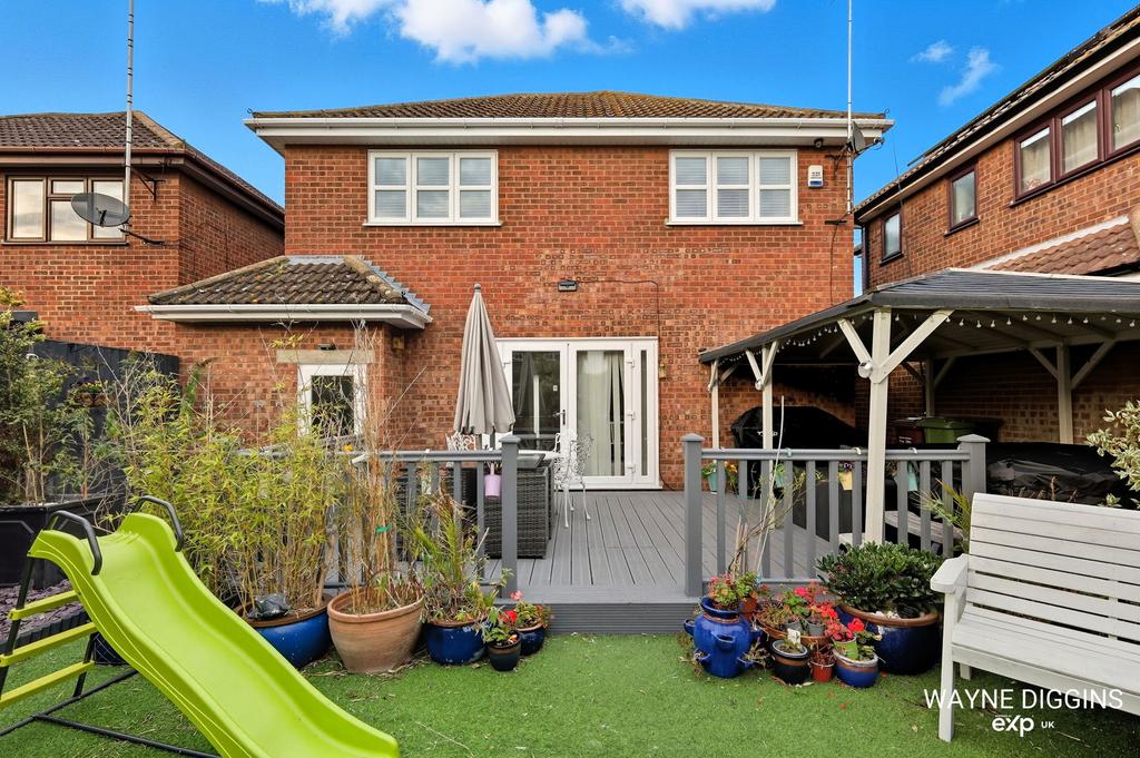 HOME SWEET HOME!!! Ref: WD 1273 Positioned in a sought-after location on Hilton Road, this spacious four bedroom detached family home offers a perfect blend of modern living, generous accommodation, and a beautifully designed low-maintenance rear garden, making it an ideal choice for growing families. On approach, the property offers excellent kerb appeal with off-street parking for two to three vehicles, in addition to a double-length garage, providing ample space for vehicles or storage. Internally, the ground floor has been designed with family living in mind. The welcoming entrance hallway leads to a modern fitted kitchen/breakfast room which offers a range of units and space for dining, creating a bright and social hub of the home. To the rear, the generous lounge/diner is the perfect place to relax or entertain, with French doors opening directly onto the garden, allowing for seamless indoor-outdoor living. A ground floor W.C. completes the downstairs accommodation. To the first floor, the master bedroom benefits from its own en-suite shower room, while three further bedrooms are well-proportioned and share a modern three-piece family bathroom suite fitted with a bath and shower over bath, offering flexibility for family use. The property is equipped with gas central heating and double glazing. Externally, the property boasts a well-designed, low-maintenance rear garden. This space features a decking seating area, artificial lawn, flower and shrub borders, a hot tub with pergola, outside tap, side access, and access into the garage, creating an inviting outdoor area perfect for relaxation and entertaining. The home is ideally positioned close to the Waterside Leisure Centre, Castle Point Golf Course, and local shops, schools, and amenities. Excellent road links, including easy access onto the A13, make this a convenient location for commuters. Overall, this is a wonderful opportunity to acquire a modern and versatile family home in a well-connected and desirable part of Canvey Island.