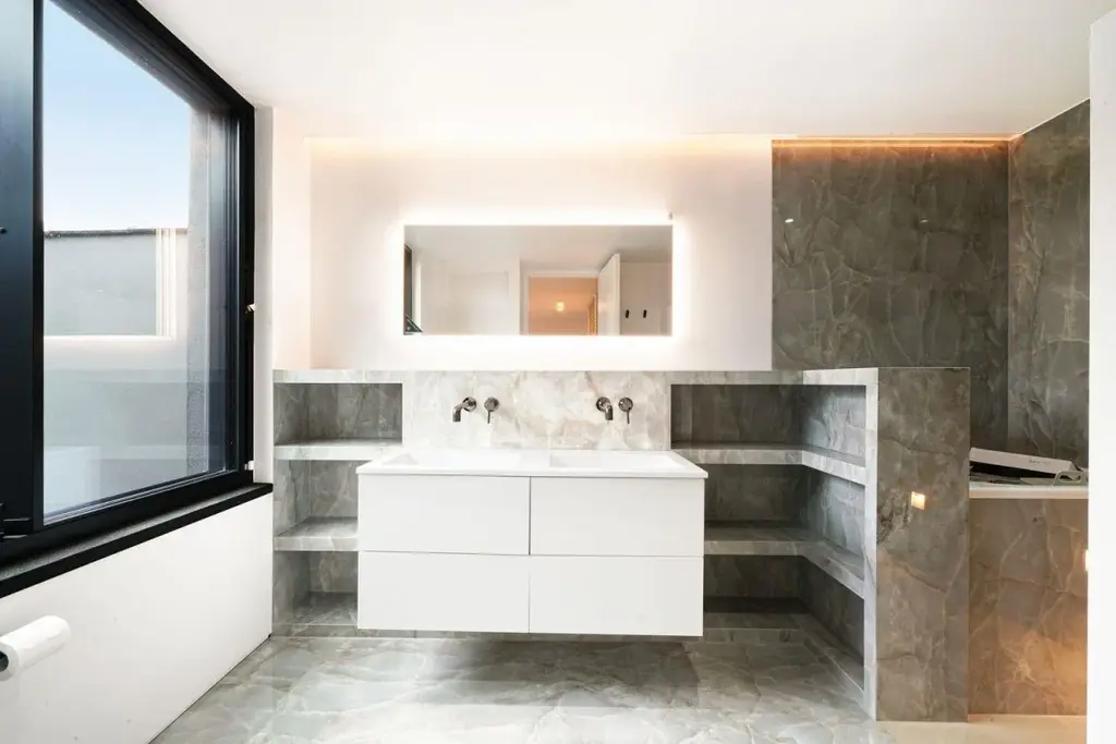 The First Floor provides four unusually large en-suite bedrooms, a spacious landing looking onto the atrium and ample storage. The Principal Suite also has a deluxe custom built dressing room and an outdoor terrace. All bedrooms exude comfort and come with generous dressing and storage space