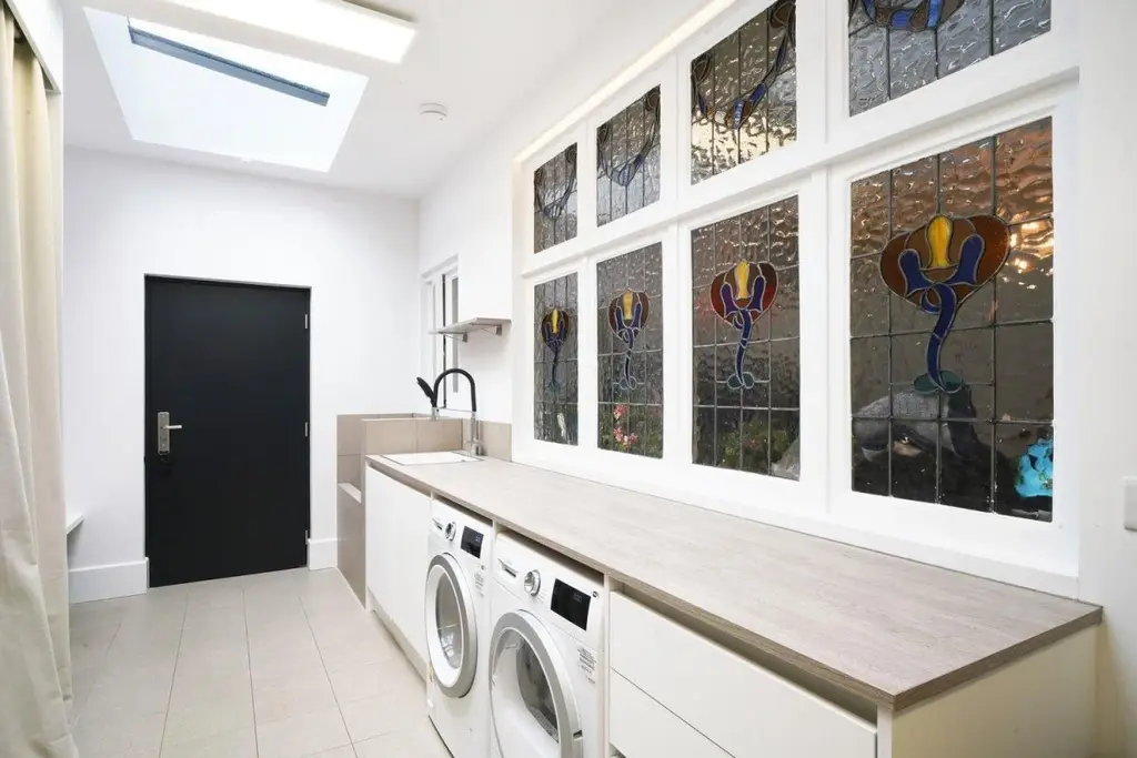 The property is situated on a wide tree-lined street in the heart of Brondesbury Park with efficient access to schools in both Hampstead and St. John's Wood. Having undergone a recent two year reconstruction under an ex Fosters and Partners architect, fusing 1930s English Arts & Crafts origins of the building with luxury contemporary design and technology.