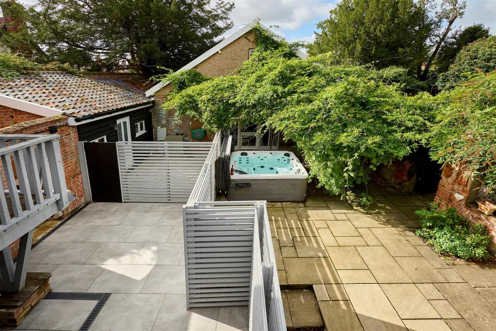 Double doors lead from the living space to the partly walled garden. It has a patio and laid principally to lawn and provides an unexpected oasis within the heart of the town.