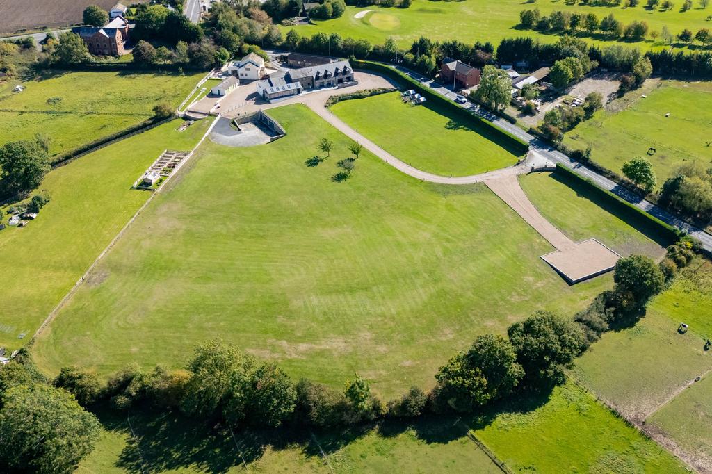 The property stands in approximately 5 and a half acres of land and has a particularly impressive entrance with automatically operated gates and a driveway that meanders through the land to the front, up to the principal driveway area which is a most impressive approach. The driveway continues around to the side parking area and a gateway leads through to the rear courtyard. This provides a huge amount of additional parking space and also has a secondary gateway out to the main road. This secondary gateway has a right of way over for the former farm house which sits in one corner of the courtyard. There is no boundary between that house and the courtyard at this moment in time, but one could happily be created if so desired. The driveway also continues to the other side giving access around to the fabulous and extremely large garage.