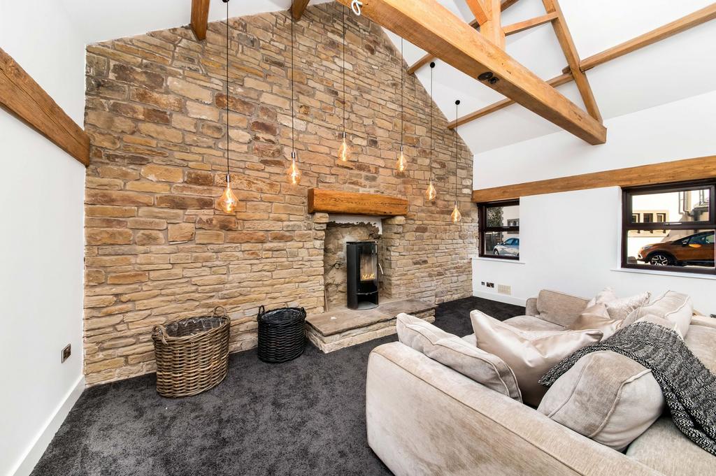 The family room is a stunning room with wonderful full height beams and timbers on display, superb lighting including inset spotlighting and a fabulous, exposed stone wall with raised stone hearth being home for a wood burning stylish stove. There are two windows giving an outlook to the rear and a further window to the front giving an outlook via the garden room.