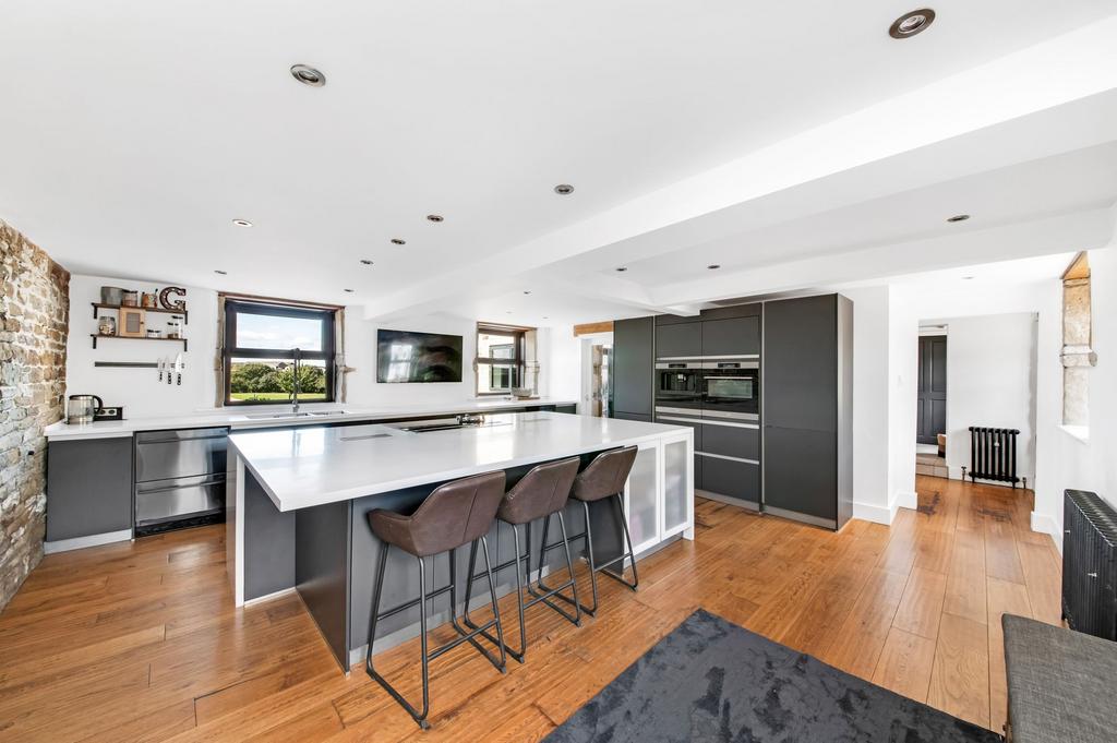 The kitchen area is superbly appointed with high specification units at both the high and low level and a large number of working surfaces which also include an island style unit with breakfast bar seating. There are glazed display cabinets, in-built oven, hob, extractor fan, dishwasher, stylish sink unit and all is well presented.