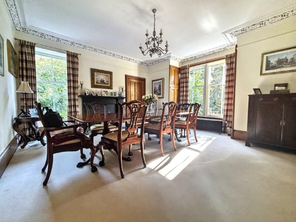 An exceptional Category C-listed stone-built villa dating back to 1866, within easy walking distance of Duns town centre. This impressive family home retains a wealth of original Victorian features including ornate cornicing, fireplaces, bay windows, and a grand central staircase, all of which contribute to the character and charm of this substantial property. Set across three main levels, the accommodation is both extensive and versatile. The ground floor is entered via an entrance vestibule leading into a generous reception hallway. From the hall, access is provided to two elegant reception rooms, a sitting room and dining room, both with bay windows and stoves, ideal for entertaining or family gatherings. To the rear, the spacious breakfasting kitchen forms the heart of the home, offering direct access to the rear garden via French doors and a large walk-in pantry. Also on this level is a rear hallway, a practical wet room/utility space, rear porch, and access to a cellar, ideal for storage or wine keeping. On the first floor, a bright landing leads to an impressive drawing room with dual aspect windows and a stove, a spacious master bedroom, two further bedrooms and two further shower rooms. The second-floor hosts two charming attic bedrooms, a bathroom, a home office and a substantial storage room, providing excellent additional space that could be adapted to suit a variety of uses. Throughout, the property benefits from gas-fired central heating and is presented in excellent condition, blending period elegance with modern practicality for comfortable family living.