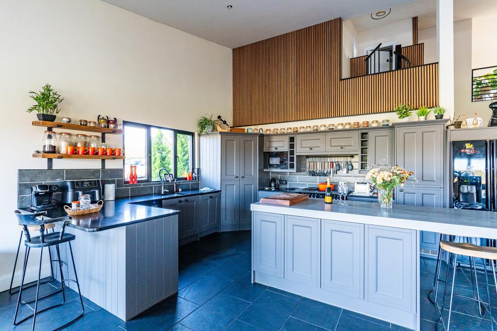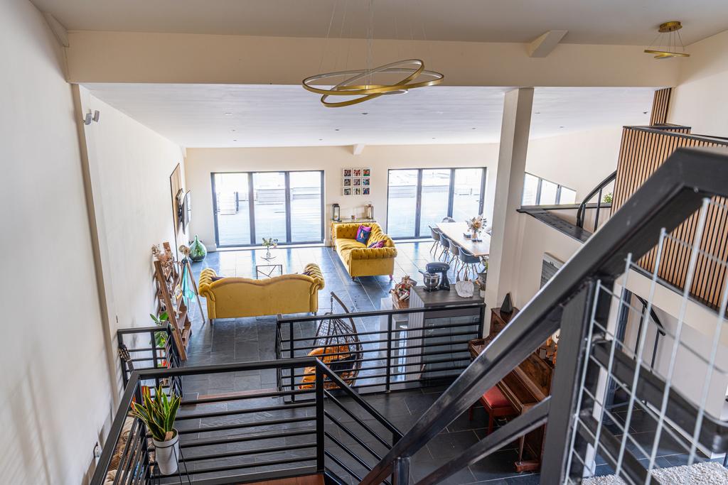 On entering the property, the spacious hallway immediately sets the tone. From here, there is access to a cloakroom with WC and a separate utility room. Steps lead down to the open-plan family living area, designed to maximise natural light and flexible use of space. The kitchen is fitted with a comprehensive range of units and a large central island, creating a superb focal point. From the hallway are two guest bedrooms, each with en-suite shower rooms, while a spiral staircase leads to a further en-suite bedroom and a useful home office. The principal staircase rises to the first floor, where the exceptional principal suite offers a dressing room and luxurious en-suite bathroom.