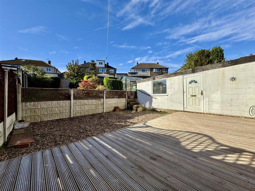 Rear Garden - This fantastic size garden is enclosed and has a range of spaces to enjoy. Adjoining the property is a lovely decked area ideal for outdoor dining with ample space for garden furniture and a decorative pebble garden. A gate opens to stone steps which leads past a greenhouse to a well maintained lawn garden with mature plants, hedging and space for a timber outbuilding if desired.
